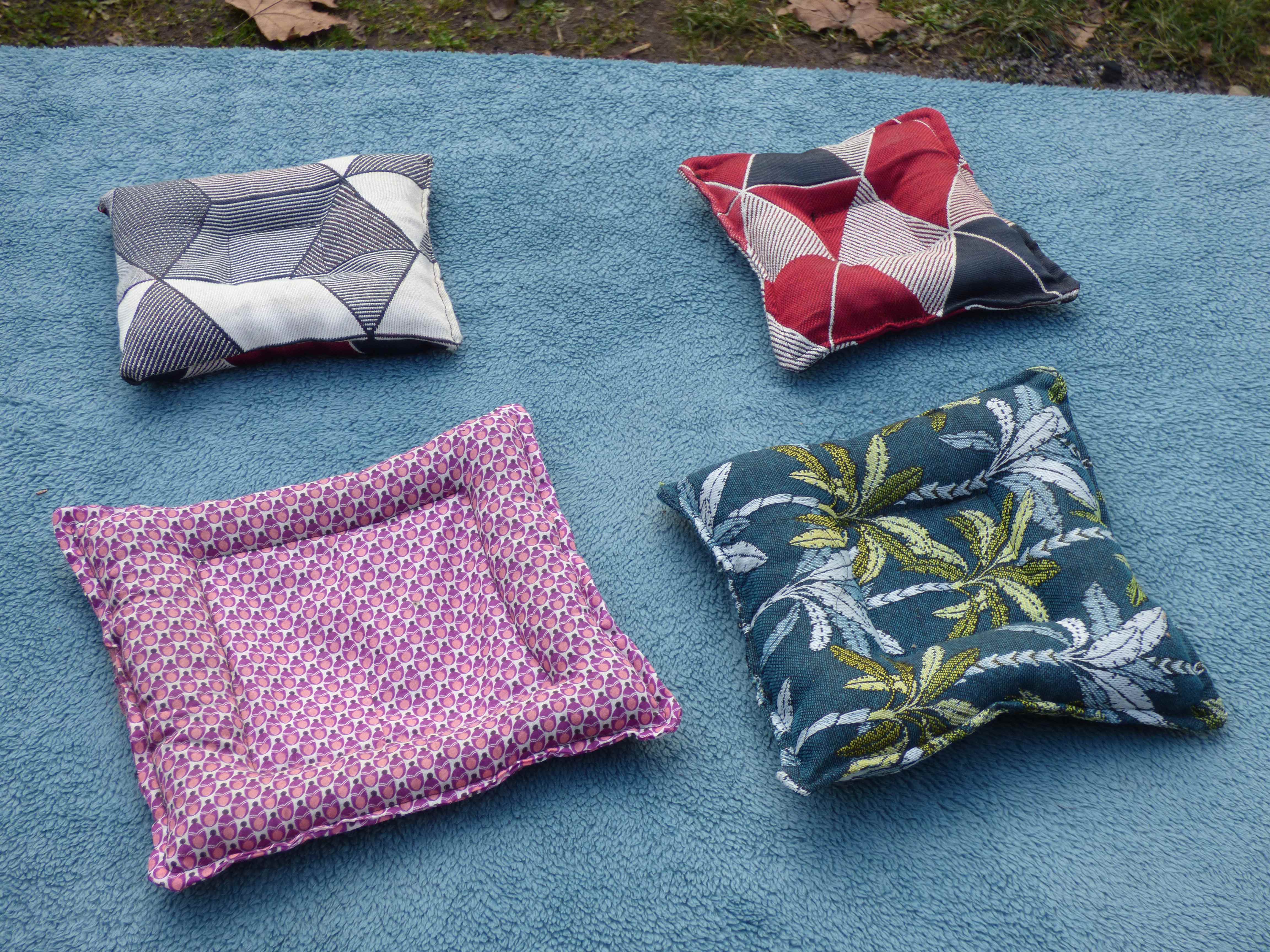 Vous avez aussi des petits coussins de tailles différentes pour les poser dessus (il est possible d’en acheter séparément comme les maillets). Ces coussins sont faits avec les poils d’animaux des peaux de tambours lorsqu’ils sont lices (Bison, highland…).